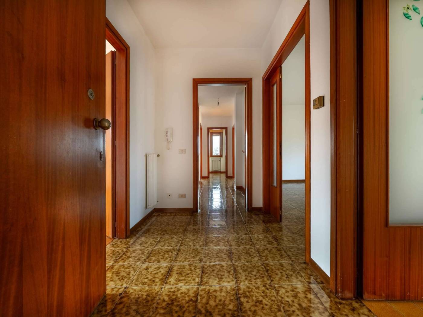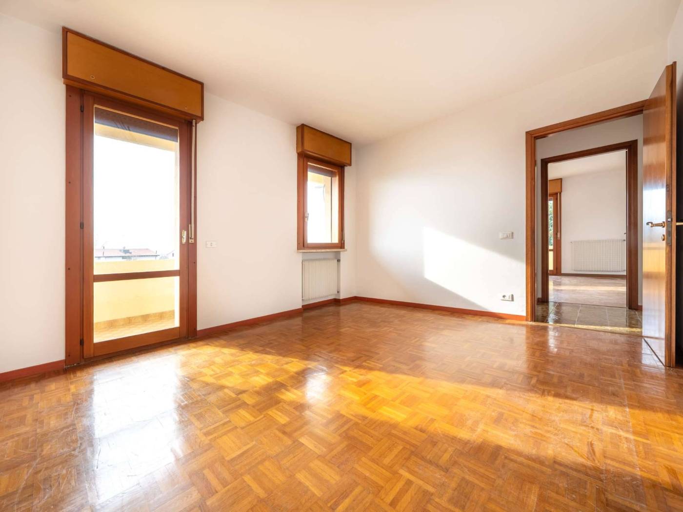 La zona giorno è pensata per chi ama gli spazi ben definiti: troviamo una cucina separata e abitabile perfetta per la quotidianità, un ampio soggiorno ideale per il relax e una funzionale stanza pluriuso, un ambiente jolly da poter adattare alle proprie esigenze come studio, stireria o stanza hobby. La zona notte si compone di due camere da letto matrimoniali ariose e luminose, da due bagni entrambi finestrati e da un pratico ripostiglio.